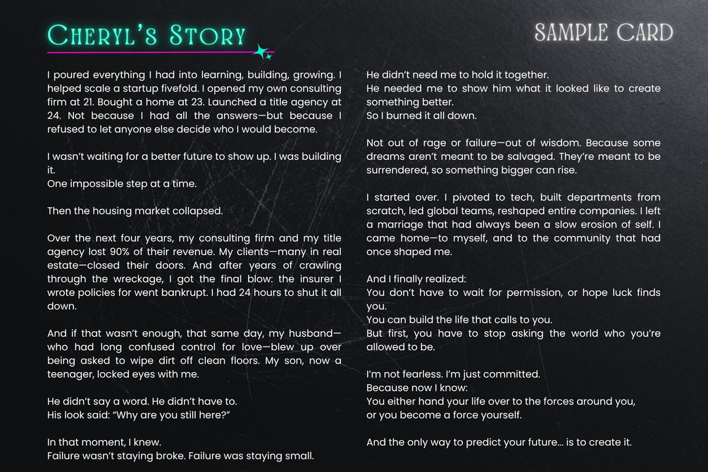 Weâre calling in 25 extraordinary women to be featured in a one-of-a-kind, story-rich, visually stunning oracle deckâeach card carrying your wisdom, your brand, and your essence.